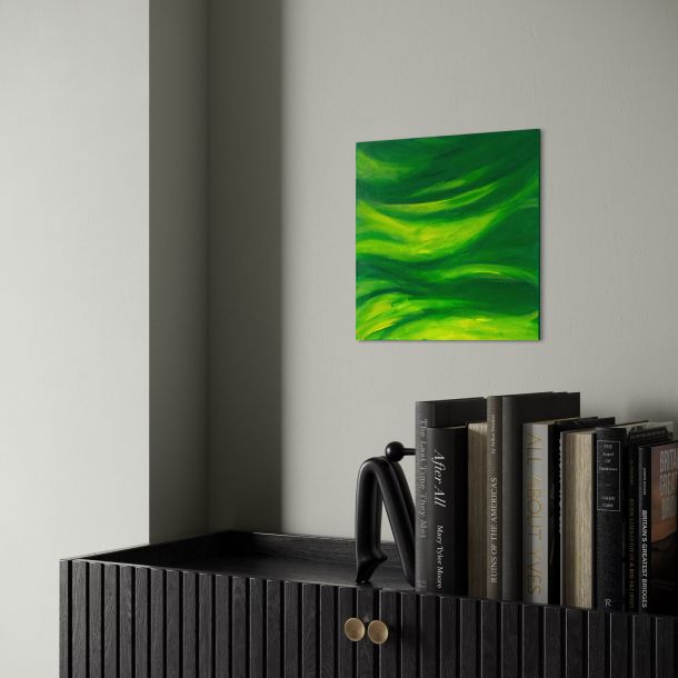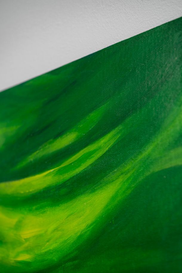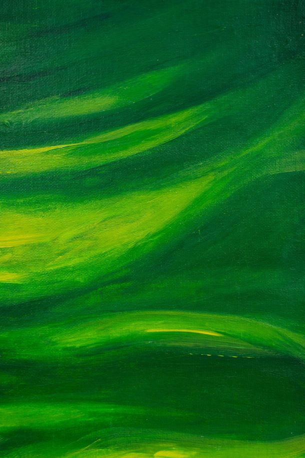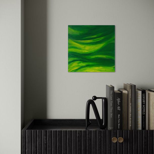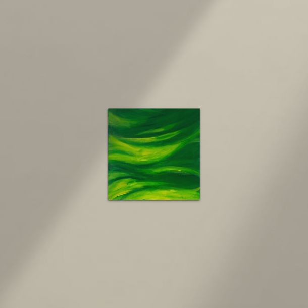 Like a deep inhale held just before release, the painting captures an almost breathing rhythm — a green current that moves without rushing, suggesting natural cycles unfolding beneath the surface.